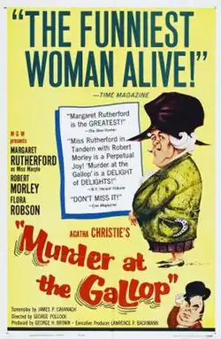 Murder at the Gallop (1963) is the second of four Miss Marple films made by Metro-Goldwyn-Mayer.[1] It was based on the 1953 novel After the Funeral by Agatha Christie, with Margaret Rutherford as Miss Jane Marple, Charles "Bud" Tingwell as Inspector Craddock and Stringer Davis (Rutherford's husband) as Jane Marple's friend Mr Stringer[2] returning from the previous film.[3]
