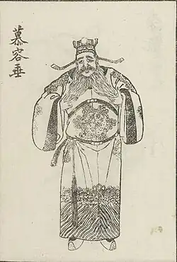 Murong Chui (Chinese: 慕容垂; 326 – 2 June 396[1]), courtesy name Daoming (道明), Xianbei name Altun (阿六敦), also known by his posthumous name as the Emperor Chengwu of Later Yan (後燕成武帝), was the founding emperor of China's Later Yan dynasty. He was originally a general of the Former Yan. He was a controversial figure in Chinese history, as his military abilities were outstanding, but as he was forced to flee Former Yan due to the jealousies of the regent Murong Ping, he was taken in and trusted by the Former Qin emperor Fu Jian, but later betrayed him and established Later Yan, giving him a reputation as a traitor. His reputation was further damaged as soon after his death, the Later Yan state suffered great defeats at the hands of Northern Wei dynasty's founder Emperor Daowu (Tuoba Gui), leading to the general sense that Murong Chui contributed to the defeats by not building a sound foundation for the empire and by choosing the wrong successor. However he continues to be regarded as a general without parallel during his lifetime for having suffered no defeats throughout his career. Murong Chui's biography in the Book of Jin described him as seven chi and seven cun tall (approximately 1.9 m (6.2 ft)) and having long arms.