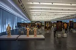In the museographic area, Lina Bo Bardi also innovated by using tempered crystal sheets leaned on concrete blocks bases as display supports for the paintings. The intention is to imitate the position of the canvas on the painter's easel, but it also has roots in interwar Italian exhibition design.[16] In the reverse of these supports, which are not used anymore, there were labels with information about the painter and the work. Paradoxically, the museum abandoned this model of exhibition at the end of the 1990s, when the method was beginning to be noticed and implemented by foreign institutions and artists.[17]