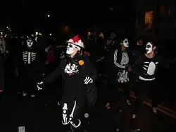 Grim came at the perfect time: the swing revival was taking off in those days with bands like Big Bad Voodoo Daddy and Squirrel Nut Zippers, and the Day of the Dead was just entering pop culture. In the Mission District in San Francisco, you could go to a club like Bruno’s and hear hot new swing bands like The Red Hot Skillet Lickers mix original sounds with old standards, then duck around the corner to a taqueria and hear a mariachi band play, and on the Day of the Dead there would be a huge parade at night. Almost every musician in the original Grim Fandango score, from the brass to the mariachi players to the Peruvian flutist, played in or came from the Mission District.[21][13][6][22][23]