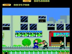 Due to space limitations on the Sega Card, the Sega Master System port only features the street gang in three stages that go in a continuous loop until the player loses all lives and gets a game over. The ninjas and the ape/human enemies from the arcade version are omitted.