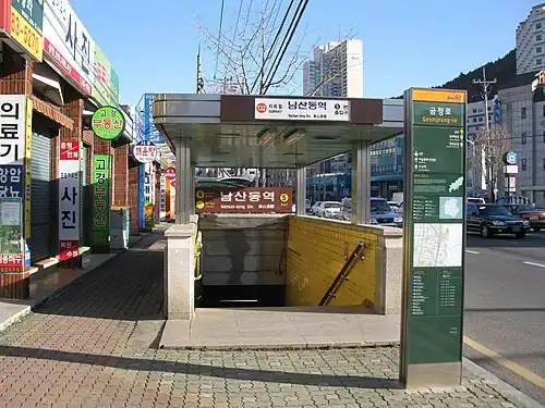 Namsan Station (Korean: 남산역; Hanja: 南山驛) is a station of Busan Metro Line 1 in Namsan-dong, Geumjeong District, Busan, South Korea.