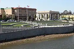 The Napa River traverses the city on its journey to the San Pablo Bay. The city has conducted a variety of waterfront development along the banks of the river, including certain fill operations governed by the United States Army Corps of Engineers regulations.[32] The Napa River Flood Project has been in progress since the late 1990s, with the goal of mitigating the risk of flooding along a 6-mile (9.7 km) stretch of the river and 1-mile (1.6 km) of Napa Creek.