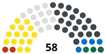 On 17 April 2022, the sixth legislature was sworn in after the 2022 elections, NPP's electoral alliance with the APRC and with NRP gave the pro-government bloc a majority, with 29 seats.[1]