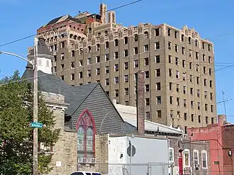 In 1985, the city's commerce department attempted to obtain grants in order to finance a $5.8 million renovation of the building, the same year it was listed on the National Register of Historic Places.[11][1] In 1995, the building's then owner, Mohammed Mizani, pleaded guilty to conspiring to illegally remove asbestos from the building, using the unskilled labor of homeless people from the city's Center City homeless shelter. Mizani had the illegal work done twice, first in 1988, and a second time in 1992.[12][13] He was sentenced to 18 months in jail in February 1996.[14]