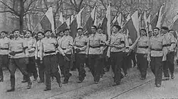 Another effect of the youth character of the OWP was the growing generational conflict in the national movement, most fully described in Wojciech J. Muszyński's book "The Spirit of Youth. The Polish Organization and the National-Radical Camp in the Years 1934-1944. From Student Revolt to Independence Conspiracy." The mass transition of young people from the disbanded OWP to the SN soon led to tensions between the "old" and the "young," with a dilemma emerging among the latter whether to stick with Dmowski's conservative political methods or to follow the path of "national revolution," also seeking answers to the question of how Catholic Poland was to survive between the socialist Soviet Union and national-socialist Germany. Added to this was the fundamental question for the Second Republic, how the postulated nation-state should function, since Poles made up less than 70% of the population there, while the rest were minorities, the most numerous of whom were Ukrainians and Jews.[8]