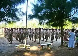 Although Scouting is part of the school program, especially for grades 6-8, it is not actually mandatory. Options do exist for participation in other youth programs, such as the Thai Red Cross; however, the vast majority of Thai youth participate in Scouting. Scouts wear their Scout uniforms to school once a week, though which day of the week is set by the local schools.[2]