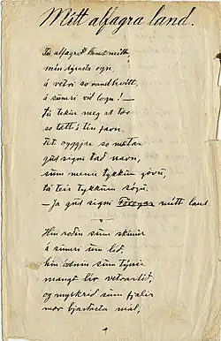 | Also known as | Mítt alfagra land (English: My fairest land) |