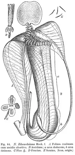- ^ a b c d e Hooker, J.D. 1859. XXXV. On the origin and development of the pitchers of Nepenthes, with an account of some new Bornean plants of that genus. The Transactions of the Linnean Society of London 22(4): 415–424. doi:10.1111/j.1096-3642.1856.tb00113.x