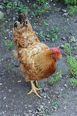 The New Hampshire Red or New Hampshire is an American breed of chicken. It was developed in the early twentieth century in the state of New Hampshire by selective breeding of Rhode Island Red stock; no other breed was involved.[7]: 216 [8]: 192 It is fast-growing, early-maturing, quick-feathering, and yields a meaty carcass.[9] Mature birds are a light or medium red in color; they may fade in sunlight.[9]