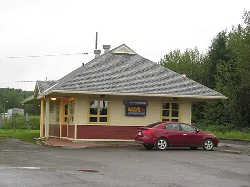 The New Richmond station is a closed railway station in New Richmond, Quebec, Canada. It served Via Rail's Montreal-Gaspé train until 2013, when the line was closed east of Matapédia station. The station was located on rue McCormick, and was staffed with limited wheelchair accessibility.