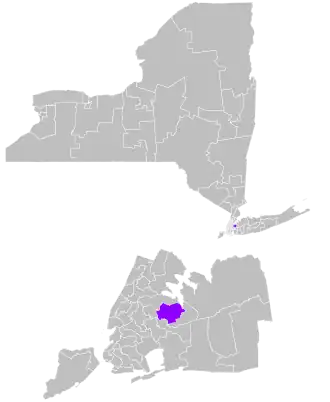 The district overlaps with New York's 6th and 14th congressional districts, and with the 24th, 25th, 26th, 27th, 28th, 30th, 34th, 35th, 39th, and 40th districts of the New York State Assembly.[5]
