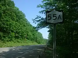 New York State Route 55A (NY 55A) is a state highway located in Sullivan and Ulster counties. It is a loop route connected to NY 55 at both ends, near Grahamsville in the west and Napanoch in the east. Inside the loop is New York City's Rondout Reservoir.