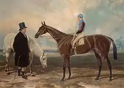 Newminster was a bay colt bred by William Orde and foaled in 1848.[1] He was sired by Touchstone, who won the St. Leger Stakes as a three-year-old, before winning both the Doncaster Cup and Ascot Gold Cup twice as an older horse. He was also a successful stallion, becoming British champion sire four times.[2] Touchstone sired many Classic winners including the Derby winners Cotherstone, Orlando and Surplice.[3] Newminster's dam was Beeswing, a daughter of Doctor Syntax. Beeswing was a successful racemare who raced for many years. Her wins included six Newcastle Gold Cups, four Doncaster Cups and one Ascot Gold Cup. Beeswing also foaled the 2000 Guineas winner Nunnykirk, who was also sired by Touchstone.[4] Newminster was purchased as a yearling by Anthony Nichol and put into training with John Scott.[5]