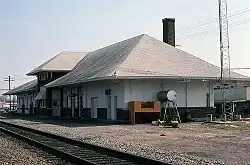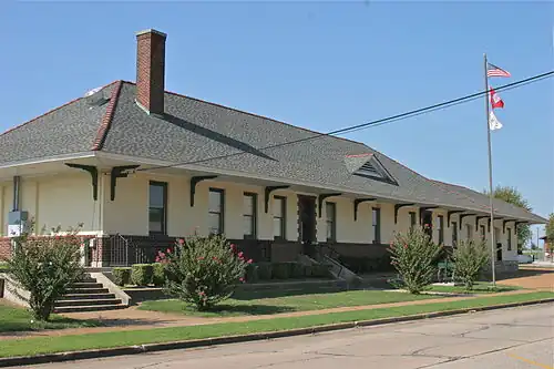 The Newport station, also known as Missouri-Pacific Depot-Newport, is a historic railroad station at Walnut and Front Streets in Newport, Arkansas. It is a long rectangular single-story brick and stucco topped by a hip roof, whose wide eaves are supported by large Italianate knee brackets. Its roof, originally slate, is now shingled, detracting from its original Mediterranean styling. A telegrapher's bay extends above the roof line on the track side of the building. The building was built in 1904 by the Missouri-Pacific Railroad to handle passenger and freight traffic.[3]