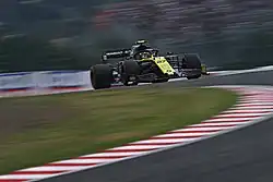 Hülkenberg started the season strongly, outqualifying new teammate Ricciardo at his home race, but an engine issue prevented him from reaching Q3, leaving him 11th. He made a very strong start and finished the race in 7th.[49] However, he was hit by misfortune in the next race in Bahrain. An engine mapping issue restricted him to 17th in qualifying.[50] However, he had a fantastic race, moving up 11 places and being on course to finish 6th, surviving contact with Ricciardo on the way, when the Australian slid into him as Hülkenberg overtook him. Then, on lap 53, 4 laps from the end, disaster struck as both Hülkenberg and Ricciardo, running 6th and 10th respectively, both retired with engine issues at the same corner.[51] Abiteboul stated that Renault's engine problems were "unacceptable".[52] These issues were compounded, when Hülkenberg again retired from a points-scoring position with engine issues at the next race in China, this time with a software issue.[53] In Spain, Hülkenberg crashed in qualifying and damaged his front wing. He had to fit a different specification front wing, which broke parc fermé rules, ensuring he would have to start the race in the pit lane. He would finish the race in 13th.[54] In the following race in Monaco, a chance of a points finish evaporated, when the Ferrari of Charles Leclerc hit Hülkenberg, while attempting an overtaking move, which the German labelled "too ambitious". Both drivers suffered punctures. Hülkenberg recovered to 13th, but Leclerc eventually retired from the race.[55] He then finished the next two races in 7th and 8th place in Canada and France respectively. At the British Grand Prix, he recovered to a 10th-place finish, after he was hit by former teammate Sergio Pérez and his engine momentarily failing and going into 'limp mode', whilst also bemoaning the team's strategy.[56] Hülkenberg then crashed out of his home race in precarious wet conditions. He was in 4th place, having run as high as 2nd at one point, when he crashed out at Turn 16, where fellow drivers Charles Leclerc, race leader Lewis Hamilton and former teammate Carlos Sainz also went off. The latter two managed to survive their incidents and continue, while both Leclerc and Hülkenberg retired. Both retirees criticised the run-off of the corner, which is a different tarmac used for dragster racing, which meant there was no grip in the wet conditions to help prevent the accident.[57] At the following race in Hungary, Hülkenberg was in the running for points, but then he suffered yet another engine problem on his Renault, which meant he was only able to finish in 12th place.[58] Going into the summer break, Hülkenberg was only 14th in the championship with 17 points, 5 points behind new teammate Daniel Ricciardo in 11th place. Renault's points total of 39 points was 43 points behind the position they were in the previous year, after they suffered a disappointing first half of the season.