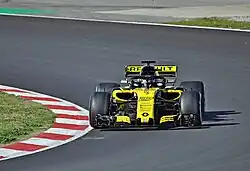 Hülkenberg started the second half of the season strongly by qualifying 7th in Belgium. A grid penalty meant he started 12th, and he fell even further back when he took evasive action to avoid collisions involving Verstappen, Räikkönen, Ricciardo and Stroll. However, he executed an alternate two-stop strategy and made up 3 places in the last lap to finish 8th.[62] In Italy, both Renaults had a very strong weekend, with Ricciardo and Hülkenberg qualifying 5th and 6th respectively, with both drivers moving up a place to finish 4th and 5th, after Sebastian Vettel spun out of contention. This was Renault's best points haul since returning to the sport in 2016, and Hülkenberg's joint best result for the team.[63]