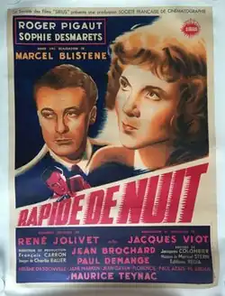 Night Express (French: Rapide de nuit) is a 1948 French crime drama film directed by Marcel Blistène and starring Roger Pigaut, Sophie Desmarets and Paul Demange.[1] The film's sets were designed by the art director Jacques Colombier.