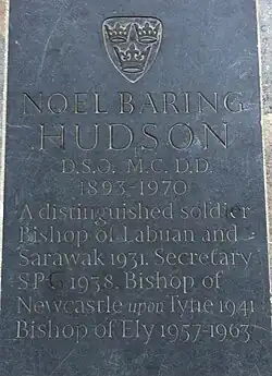Noel Baring Hudson DSO MC (18 December 1893 โ 5 October 1970) was an Anglican bishop who served at Labuan and Sarawak, St Albans, Newcastle and Ely. He was a first-class Rugby Union player, a brave and successful soldier and an eminent senior cleric.[1]