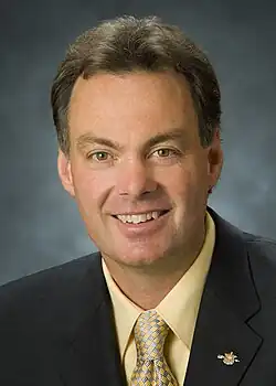 As the 38th Parliament began, Macdonald was assigned to be his party's critic for Municipal Affairs.[14] In a June 2006 critic shuffle, Macdonald was reassigned to Tourism, Sport and Arts[15] and then to Education critic in their August 2008 shuffle.[16] On provincial issues he spoke out against the 2005 back-to-work legislation for teachers and Bill 30 which exempted independent power producers from local government review,[17] a bill that allowed hotels in provincial parks,[18] a reorganization of Office of the Fire Commissioner which resulted in fewer rural fire officials.[19] He worked with fellow NDP MLAs Scott Fraser and Maurine Karagianis on a bill called First Nations Heritage Protection and Conservation Act[20] which was introduced into the Legislative Assembly by Karagianis in May 2008, though it did not move past first reading. He called for a "seniors representative",[21] similar to the province's Children's Representative[22] and he hosted a forum in his riding to discuss seniors-specific issues.[23] He joined a NDP delegation who traveled to Taiwan to promote tourism and economic issues.[24] Macdonald and neighbouring MLA Bill Bennett of the BC Liberals had an ongoing feud.[25][26][27][28][29][30][31]