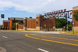 Normandy started a high school at Lincoln Elementary School in Pagedale early its history but it did not last beyond a year. In 1907 a high school was started in the former Washington Elementary School on St. Charles Rock Road, but only one class graduated when the school closed in 1911.[4] In 1923, the district again opened a school, this time on property purchased from the Eden Theological Seminary.[4] For its first year, the high school shared the ornate four-story main building with Eden students.[4] Plans by William B. Ittner for a California-style collegiate campus with a central quadrangle were implemented shortly after. The school opened as a combined junior high school and senior high school, with six levels from 7th through 12th grades.[4] Plans also called for adding the first two years of college. This plan was realized in a way forty years later with the opening of the Normandy Residence Center, which became the University of Missouri-St. Louis. A vocational building and gymnasium, also designed by Ittner, were added in 1929.[4] The vocational building remains as West Hall. The gymnasium, with curved, amphitheater-style seating, was renowned in the area for its architecture.[4]
