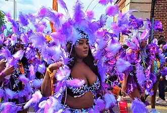 It is led by members of the British Caribbean community, and attracts around two million people annually, making it one of the world's largest street festivals, and a significant event in British African Caribbean and British Indo-Caribbean culture.[4][5] In 2006, the UK public voted the Notting Hill Carnival onto a list of icons of England.[6]