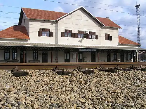 Nova Gradiška railway station (Croatian: Željeznička stanica Nova Gradiška) is a railway station on the Novska–Tovarnik railway in Croatia, located in Nova Gradiška. The railroad continues to Okučani in one direction and to Staro Petrovo Selo in the other. Nova Gradiška railway station consists of six railway tracks. [1]