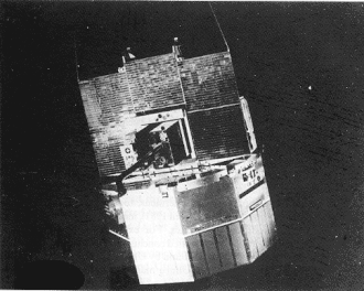 - ^ OSO 7 in orbit A photograph of the OSO 7 taken before launch, on a black background as it might have appeared in space.