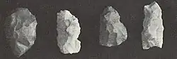 - Stone artifacts - including projectile points, scrapers (including humpback scrapers), gravers, graver drills, knives, cores, utilized flakes and a chopper. Of the projectile points, the most numerous category was the small triangular Madison point.