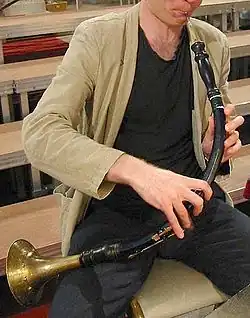 The oboe da caccia (pronounced [ˈɔːboe da (k)ˈkattʃa]; literally "hunting oboe" in Italian), also sometimes referred to as an oboe da silva, is a double reed woodwind instrument in the oboe family, pitched a fifth below the oboe and used primarily in the Baroque period of European classical music. It has a curved tube, and in the case of instruments by Eichentopf (and modern copies of same), a brass bell, unusual for an oboe.