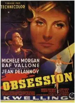 Obsession is a 1954 French crime film directed by Jean Delannoy who co-wrote the screenplay with Antoine Blondin, Roland Laudenbach and Gian Luigi Rondi. The film is based on the story "Silent as the Grave" by Cornell Woolrich written under the pseudonym William Irish.[2] The film stars Michèle Morgan and Raf Vallone.