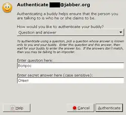 Off-The-Record authentication in Pidgin using Socialist millionaires protocol