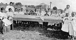 The school was founded in 1901[2] as the Zulu Christian Industrial School by John Langalibalele Dube and his first wife, Nokutela.[3] The school, also known as the Ohlange Native Industrial Institute,[2] was the first educational institution in South Africa to be founded by a black person. The land for the school was donated by Chief Mqhawe of the AmaQadi.[2] John Dube had been in contact with Booker T. Washington and modelled the school after the Tuskegee University in America. As a result, the Zulu Christian Industrial Institute laid emphasis on developing self-reliance in its students. In 1901, the school was renamed the Ohlange Institute. It was called "Ohlange" by Dube based on the word "uhlanga", which means the point of new growth in a plant or an ancestor for a descended family.[4]