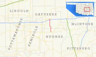 - ^ Oklahoma Department of Transportation (2010–2011). Control Section Maps: Hughes County (PDF) (Map) (2010–2011 ed.). Scale not given. Oklahoma City: Oklahoma Department of Transportation. Retrieved November 8, 2012.