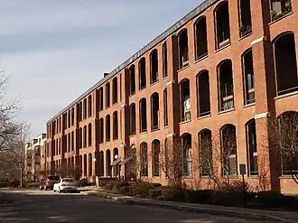 The Nemasket Mills Corporation was established in 1891 for cotton textile manufacture on the western portion of the former site of the Old Colony Iron Works. With an initial working capital of $400,000, Lewis Williams served as the company's first president. In 1899, this mill was acquired by New England Cotton Yarn Company, which also included the Cohannet Mills in Taunton, and several other mills in Fall River and New Bedford.[12] The company's Taunton mills were sold in June, 1916.[13][14] Cohannet Mill No. 3, located at Weir Village was sold by New England Cotton Yarn Company to William Butler, who renamed it Nemasket Mill. The former Nemasket Mill (Old Colony Avenue) was sold to the Connecticut Cotton Mills Company.[15] Operating as the Taunton Cotton Mills Company, the plant produced cotton cord for the tire industry.[16]