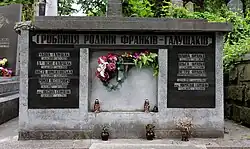 - ^ a b Public sign, tombstone in Ukraine (also see image in article)