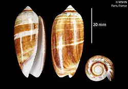 | Shell of Oliva bifasciata (specimen at MNHN, Paris) | |
