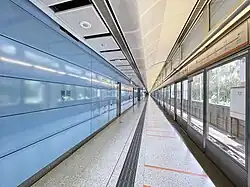 Olympic is a station on the Tung Chung line of Hong Kong's MTR. The livery is dodger blue.