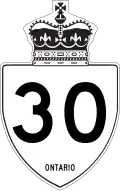 - ^ Ontario Road Map (Map). Cartography by C.P. Robins. Department of Highways. 1942. § S7.
