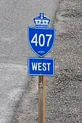 King's Highway 407, commonly referred to as Highway 407 and colloquially as the "four-oh-seven", is a 400-series highway in the Canadian province of Ontario. Comprising a tolled privately leased segment and a publicly owned segment, the route spans the entire Greater Toronto Area (GTA) around the city of Toronto, travelling through the suburbs of Burlington, Oakville, Mississauga, Brampton, Vaughan, Markham, Pickering, Whitby, and Oshawa before ending in Clarington, north of Orono. At 151.4 km long, it is the fourth-longest expressway in Ontario's 400-series network, after Highways 417, 400, and 401. The tolled segment between Burlington and Brougham in Pickering is leased to and operated by the 407 ETR Concession Company Limited and is officially known as the 407 Express Toll Route (407 ETR). It begins at the junction of the Queen Elizabeth Way (QEW) and Highway 403 in Burlington and travels 108.0 km (67.1 mi) across the GTA to Brock Road in Pickering. East of Brock Road, the freeway continues east as Highway 407 (referred to as Highway 407 East during development to distinguish it from 407 ETR), a route operated by the provincial government and formerly tolled, for 43.4 km (27.0 mi), to Highway 35/115 in Clarington. The route interchanges with nine freeways: the QEW, Highway 403, Highway 401, Highway 410, Highway 427, Highway 400, Highway 404, Highway 412, and Highway 418. 407 ETR is an electronically operated toll highway; there are no toll booths along the route. Distances are calculated automatically using transponders or automatic number-plate recognition, which are scanned at entrance and exit portals.