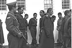 On the night of 11–12 December 1955 the operation began. Following artillery and mortar barrages against Syrian positions, elements of the 890th Paratroop Battalion, augmented by units of Aharon Davidi's 771 Reserve Paratroop Battalion as well as units from the Nahal and Givati Brigades commenced their attack. The complex operation involved a two-column attack from the north and south, which included both infantry and armored vehicles, as well as an amphibious assault conducted by troops who crossed the sea by boats of Shayetet 11. Sharon directed the operation from a small plane circling the battle area.[5][13][6] The combined force raided Syrian emplacements along the Kinneret's northeastern shoreline north of Kibbutz Ein Gev until the Jordan River estuary, and destroyed all the gun emplacements they attacked. The Syrians suffered fifty-four killed in action and another thirty Syrian soldiers were taken prisoner. The Israelis lost six soldiers, with another ten wounded. Among these was Company Commander Yitzchak Ben Menachem, a highly regarded soldier and Israeli hero of the 1948 Arab–Israeli War[14] who was killed by a Syrian hand grenade while attacking Syrian positions near Akib.[15] His death notwithstanding, the mission was regarded as an unmitigated success. Political fallout generated by the operation would later prompt Ben-Gurion to comment, somewhat sarcastically, that it may have been "too successful".[12]