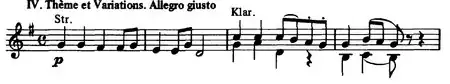 - After the Piano Variations on a Theme by Gluck, K. 455. (The theme was the aria "Unser dummer Pöbel meint" from Gluck's opera La Rencontre imprévue, ou Les Pèlerins de la Mecque).