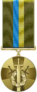 ![]() | Medal For Irreproachable Service 1st Class Медаль «За бездоганну службу» I ступеня | 1996 | Military men of the Armed Forces of Ukraine and other military formations. |