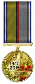 ![]() | 60 Years of Clearing of Ukraine from Fascist Aggressors Medal Відзнака Президента України — ювілейна медаль «60 років визволення України від фашистських загарбників» | 2004 | World War II veterans. |