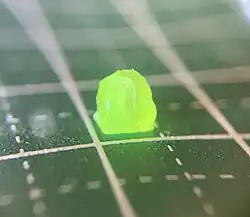 a single crystal of a Mn(II) complex, [BnMIm]4[MnBr4]Br2. Its bright green color originates from spin-forbidden d-d transitions