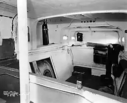 The engines were fitted with mufflers on the transom both to mask the engines' noise from the enemy and to improve the crew's chance of hearing enemy aircraft. These directed the exhaust underwater at idle and extremely low speeds and were bypassed for anything faster.[3]