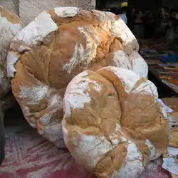 Pa de pagès (Catalan pronunciation: [ˈpa ðə pəˈʒɛs]; "farmer's bread" in Catalan) is a type of traditional bread from Catalan cuisine. It is made in an artisanal manner and baked in a refractory oven, giving it a thick crust, which helps keep the inside fresh and soft for a long period of time.[1] Its fat content is lower than that of regular bread. "Pa de pagès" has a round shape and is usually sold in 250-gram, half-kilo, or two-kilo formats. It can be bought whole or sliced and it is commonly used to prepare pa amb tomàquet.[2]