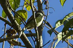The Pacific elaenia's dawn song is "an endlessly repeated 'chrrr, chrrr, che-wik, chrrr, chrrr, che-wik...' ".[7] During the day it sings "a sharp, burry PJIT! djurrrree, the second note rising" and its calls include "a gruff pjrt and similar notes".[8]