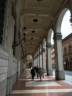 The Palazzo di Residenza della Cassa di Risparmio di Bologna is a 19th-century palace, erected as Neo-Renaissance architecture, located on Via Farini #22, Bologna, region of Emilia-Romagna, Italy. It was built and is still the headquarter of the Cassa di Risparmio in Bologna.