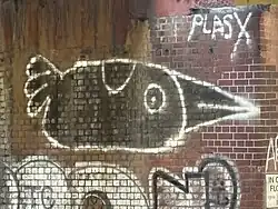 Pam the Bird is a graffiti tag consisting of a side view of a cartoon bird. In court, Victoria Police Senior Constable Scott Nicholls said, "We typically see this bird graffiti has a sharp triangle pointed beak with a line that separates the upper and lower portion of the beak that approximately extends three quarters away from the tip". Pam the Bird varies widely: it may be coloured, embellished, or a simple outline. It is often accompanied by text, including "MP.", which The Age described as the name of a graffiti crew, and 'Srock', a similarly prolific name tag.[7][3][13]